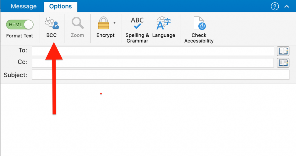 Then, under the Options tab, select BCC. The BCC box will now appear for the new message.