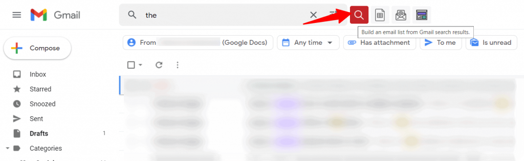 For example, if you desire to send mass emails to everyone who's talked about 'project workflow' with you, run a Gmail search for "project workflow." Once y'all go the search results, hit the Build Email List button, and GMass volition automatically add all their details to a new email's "To" field.