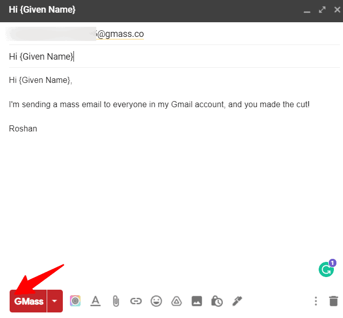 Notation: Here, {Given Name} is a personalization variable that GMass uses to automobile-personalize the e-mail for each recipient.