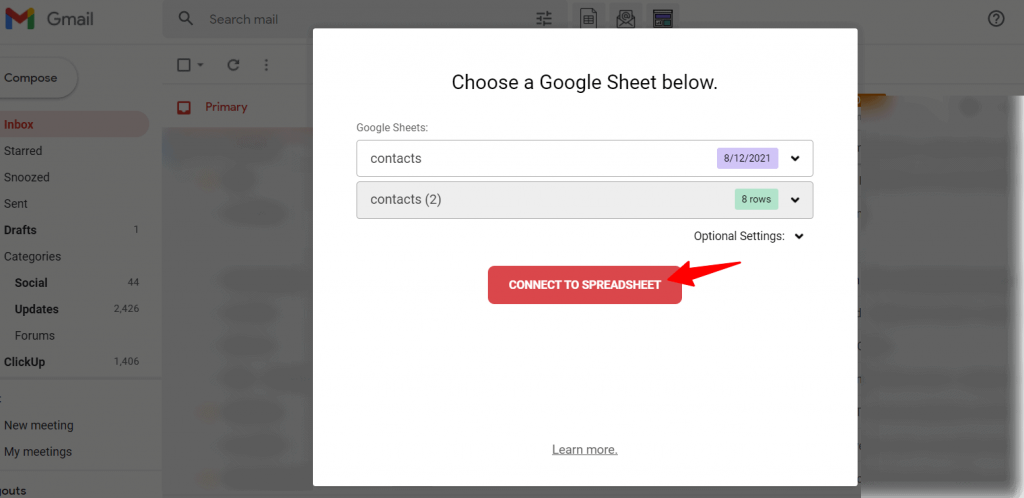 Note: at to the lowest degree one column in the sheet should contain email addresses.